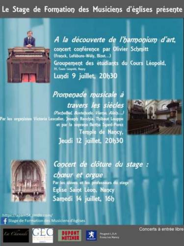 Olivier Schmitt propose, dans le cadre des soirées du Stage de Formation des Musiciens d’églises, un concert conférence autour de l’harmonium d’art. Aux claviers de l’harmonium d’art Mustel, il ponctuera sa présentation de différentes pièces de Franck, Lefébure-Wély, Bizet...