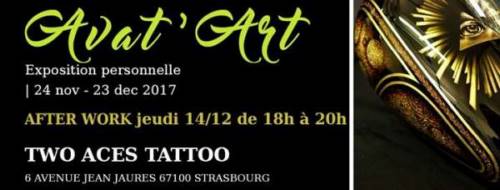 After work organisée dans le cadre de l’exposition personnelle d’AVAT’ART ! Retrouvons-nous jeudi 14/12 autour d’un verre de 18h à 20h tout en admirant les oeuvres de l’artiste! Ce sera également l’occasion de profiter des derniers jours avant Noël pour trouver un cadeau original et unique, une pièce d’art qui fera plaisir à tous les coups!