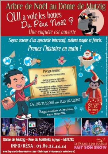 Découvrez au Dôme de Mutzig, un Goûter-Spectacle exceptionnel pour les enfants. Soyez acteur de l’incroyable spectacle interactif "Qui a volé les bottes du Père Noël". Prenez l’histoire et main et vivez de l’intérieur ce grand show mêlant féerie et magie !
