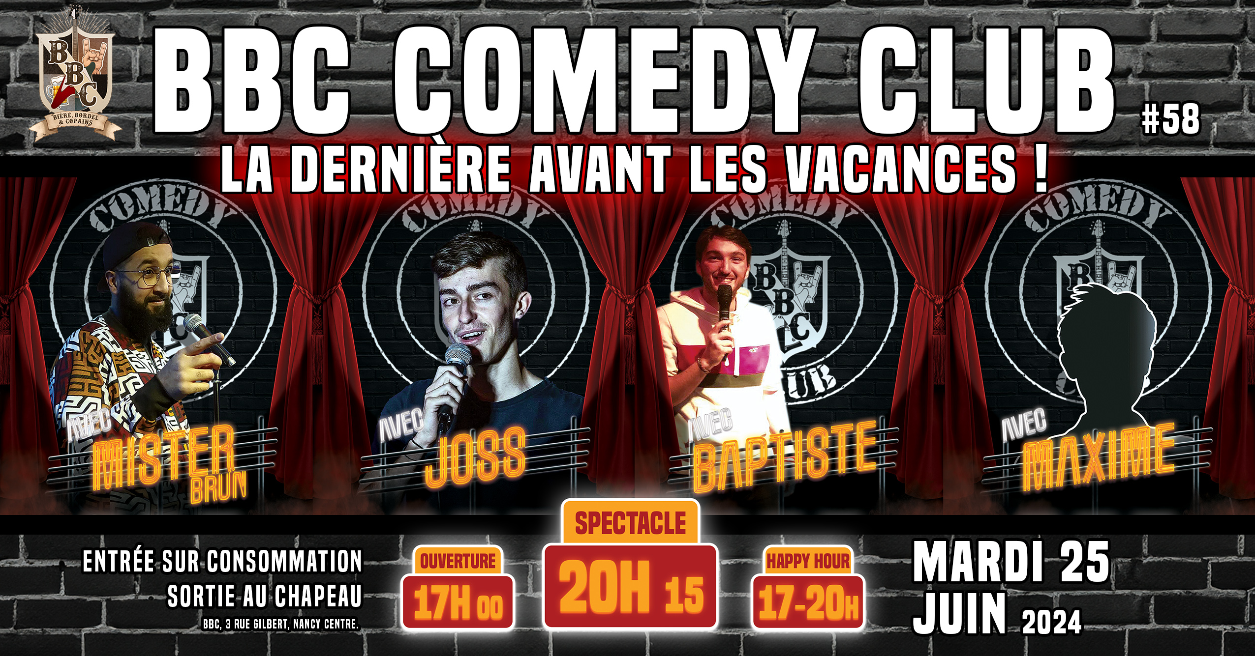 ?? Ne manquez pas la dernière soirée avant la pause estivale à l'édition #58 du BBC Comedy Club, le mardi 25 juin à 20h15 !