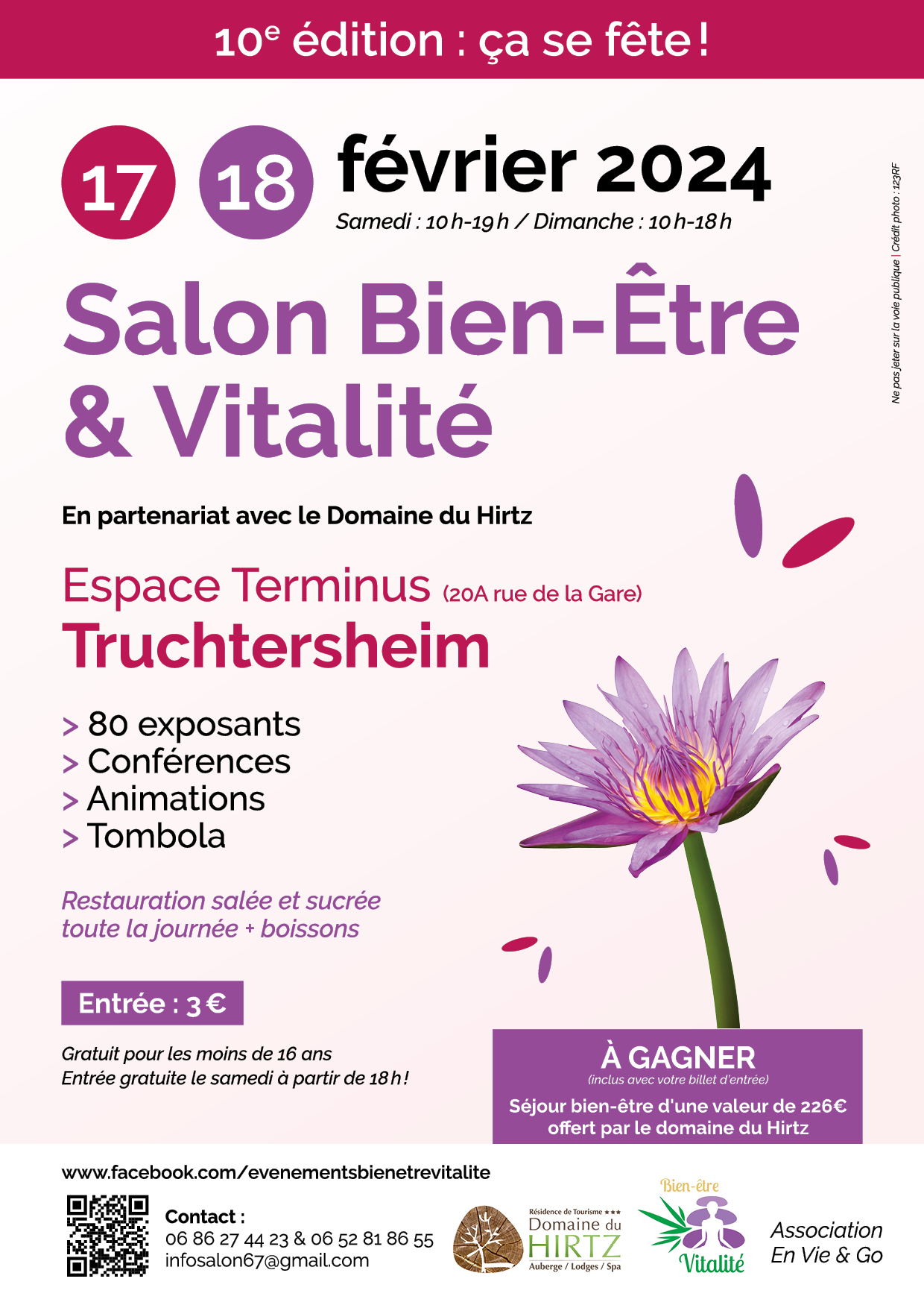 ? Nouveauté pour les 10 ans! En partenariat avec le Domaine du Hirtz, tentez votre chance pour gagner un séjour bien-être d'une valeur de 226€! Chaque visiteur aura l'opportunité de participer à cette tombola exclusive !