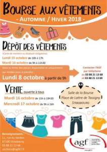 L’AGF du Bas-Rhin propose sa traditionnelle Bourse aux vêtements automne / hiver 2018 !