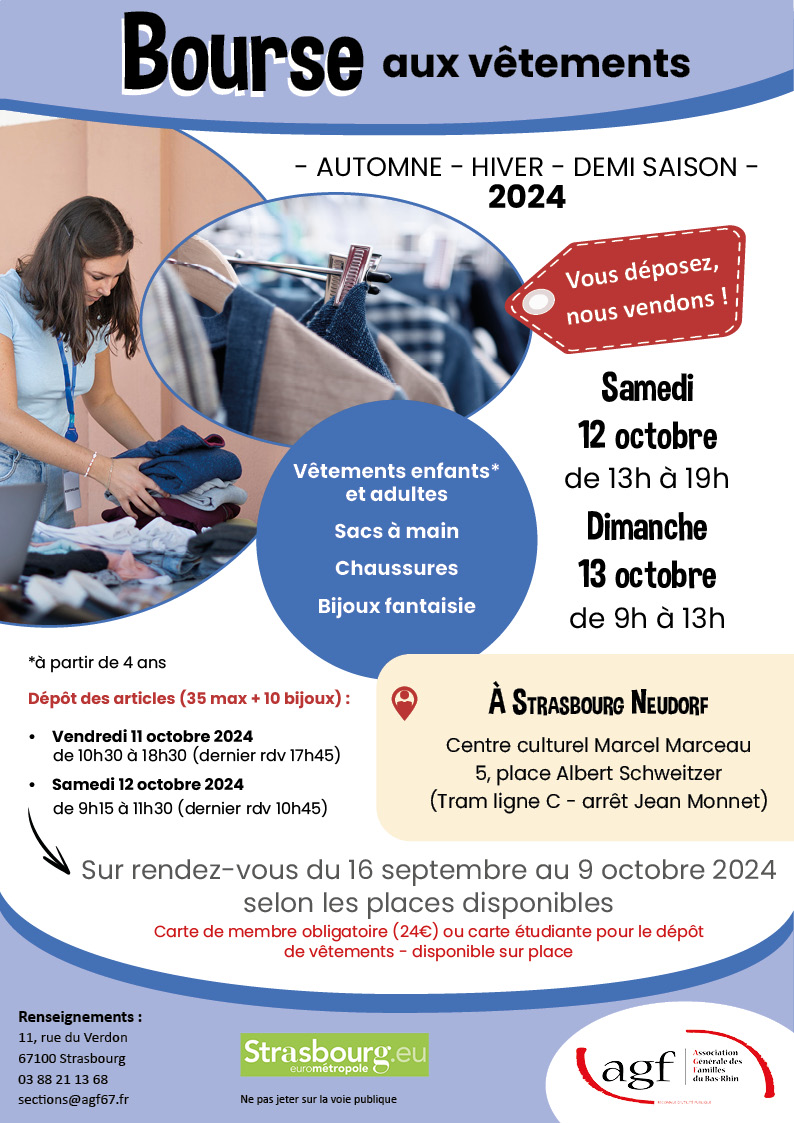 Nous vous attendons nombreux à cette nouvelle édition de la bourse aux vêtements.