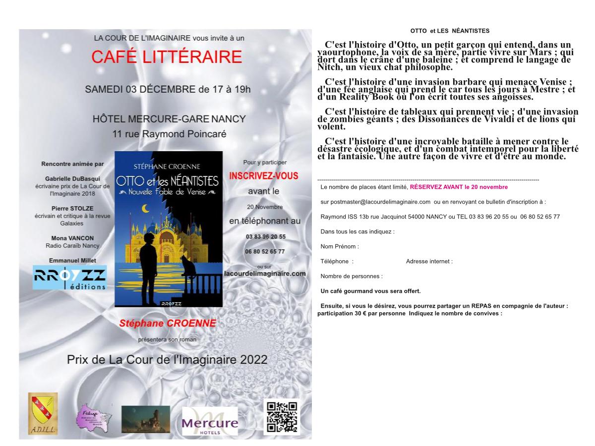 Pour participer à cette rencontre, veuillez vous INSCRIRE avant le 20 novembre en allant sur www.lacourdelimaginaire.com ou en téléphonant au 03 83 96 20 55 ou au 06 80 52 65 77