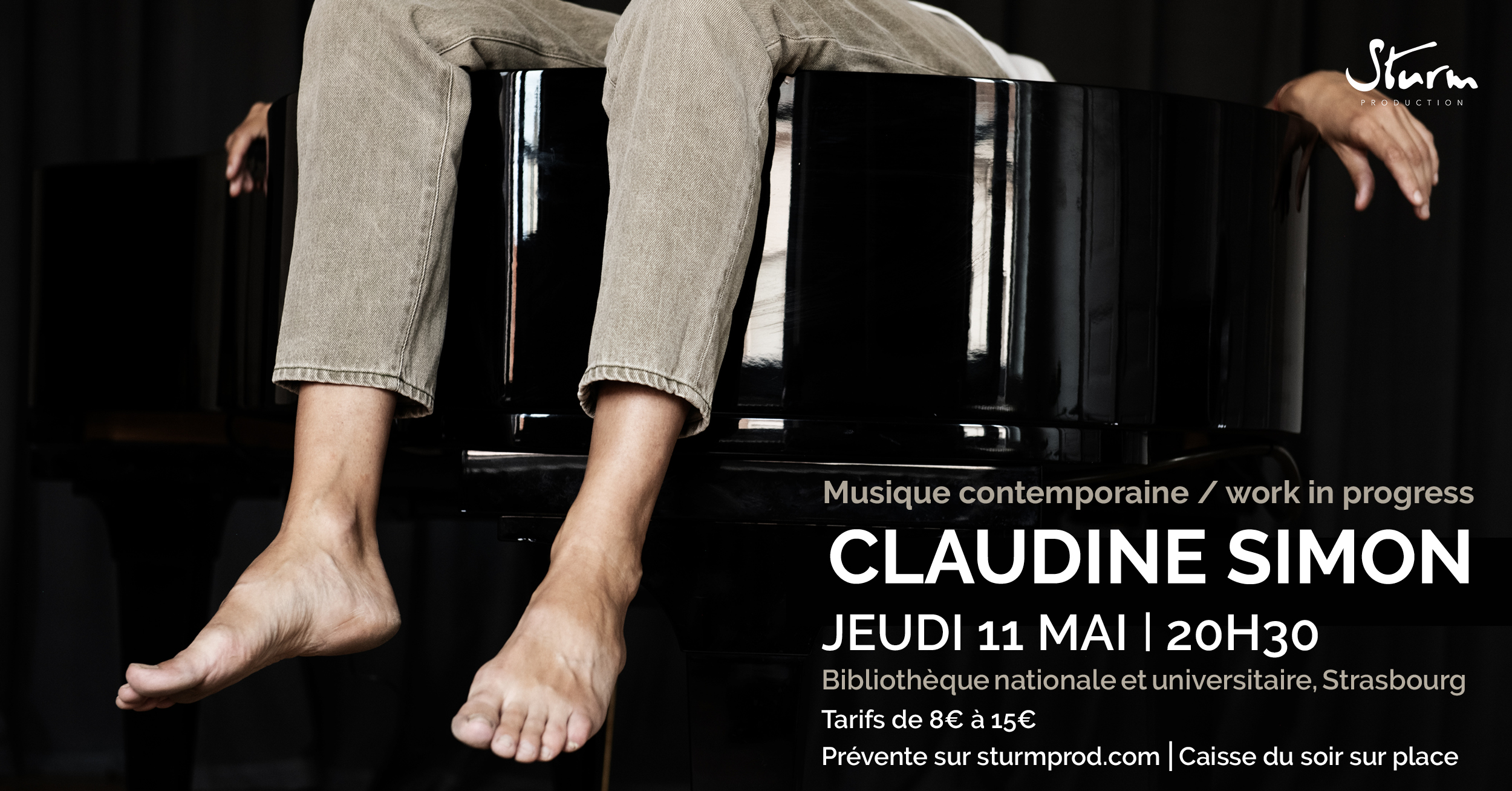 Claudine Simon est pianiste, artiste, improvisatrice, elle développe un travail de création sonore qui s’attache à expérimenter la facture et les capacités de son instrument. Musicienne polyvalente, elle manifeste un goût pour les écritures de frontières entre musique, danse et théâtre. Il s’agit pour elle d’établir des passerelles entre des sensibilités, des perceptions, entre différents langages pour approcher les multiples aspects du sensible. Formée au CNSMD de Paris auprès de Jean-François Heisser, Pierre-Laurent Aimard, Alain Savouret, elle fait de nombreuses rencontres qui nourrissent son parcours et sa pratique artistique. Comme soliste, elle se produit à l’Opéra de Lyon, la Roque d’Anthéron, l’Opéra Comique, la Cité de la Musique, au festival d’Aix-en-Provence..