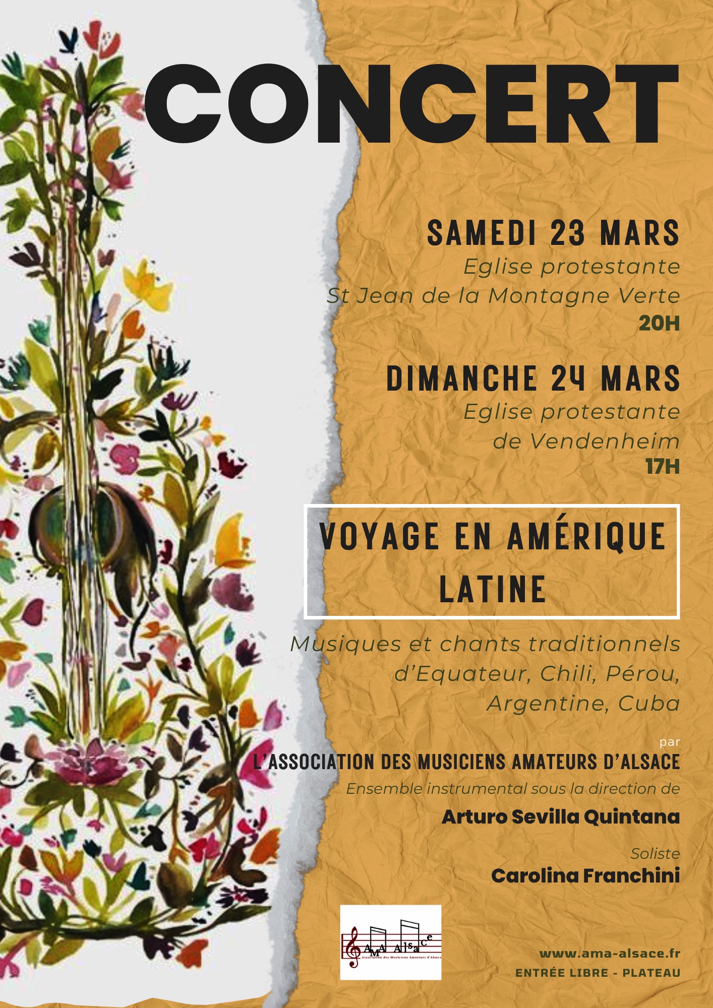Invitation à un voyage en Amérique Latine par les musiciens de l'AMA-Alsace en diverses formations.