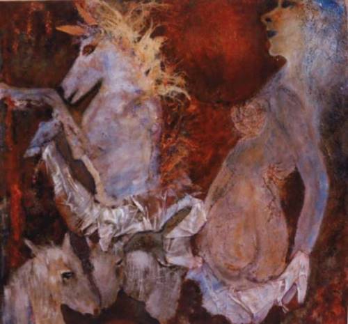 Marie Tsaniras a toujours été attirée par l’acte créatif. A travers ses toiles, l’artiste peintre redonne vie à ces petits éléments, délaissés, anodins ou insignifiants, fils, plumes, tissus, plaques de polystyrène. Ils sont le point de départ du processus de création « et trouvent ainsi par résilience une nouvelle vie. Ma peinture est faite de hasards et se construit autour d’une démarche émotionnelle ».