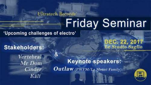 Nous sommes heureux et fiers de vous annoncer que le premier Friday Seminar en open access du label de musique électronique Ultratech Records aura lieu le vendredi 22 décembre 2017 à Strasbourg de 23h à 6h du matin. Cet événement sera l’occasion d’accueillir six intervenants d’exception qui viendront s’exprimer en musique sur leur vision respective de l’électro et de la techno. Vous trouvez ci-dessous le planning détaillé du déroulement de la soirée.