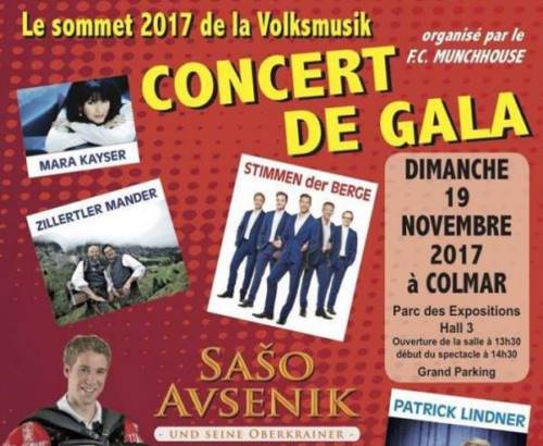 Le FC MUNCHHOUSE vous propose comme chaque année , SON grand spectacle concert Gala de la Volksmusik qui rassemblera un large panel d’artistes célèbres de la musique allemande le DIMANCHE 19 NOVEMBRE 2017 au PARC DES EXPOSITIONS DE COLMAR
