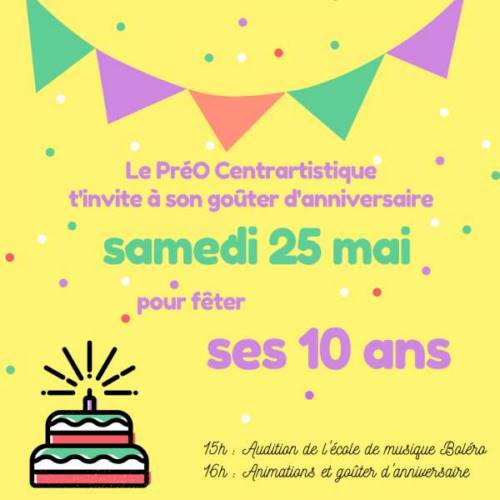 Le PréO Centrartistique fête ses 10 ans et vous invite à souffler ses bougies le SAM 25 MAI, dès 15h00.