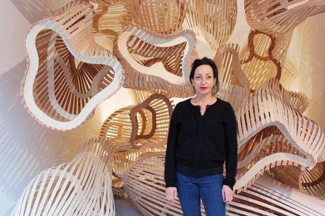 Ilana Isehayek, qui a vécu 25 ans au Canada, travaille le bois depuis cette époque : « Pour moi, c’est un matériau très vivant. Au Canada, je travaillais dans la masse, parfois à la tronçonneuse, pour créer des sculptures. Peu à peu, je suis allée vers la construction. Ce qui est intéressant, ce n’est pas de créer un module en bois, mais l’accumulation de modules en bois pour créer un autre univers. »
