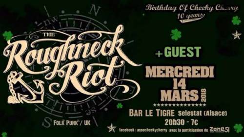 LA CHEEKY CHERRY SAINT PATRICK AVANT L’HEURE avec le retour des ROUGHNECK RIOT AU TIGRE c’est le mercredi 14 mars 2018