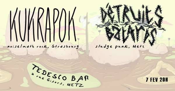 Duo noise tonitruant, KUKRAPOK combine une basse crème à une batterie aux petits oignons pour envoyer des riffs gratinés aux rythmiques fondantes.