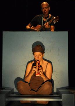 Soudain, ils aperçoivent une tache bleue, qui s’avère être une chaise. Comme ici il n’y a rien à faire, ils en inventent toutes les utilisations possibles. Ainsi, ils deviennent musiciens, acrobates, équilibristes ou magiciens.Lieu : TRAM
