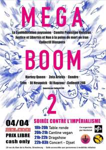 Critique sociale, petites histoires, illustration trashouille, curieuses revues, parchemins enluminés au posca, labels cassettes et vinyls autoproducteurs, tous et toutes viendront parader sur les stands de ce petit Salon, deuxième du genre en ces lieux. Au programme, on trouvera également des présentations publiques de nouvelles parutions, des ateliers sérigraphie, fanzine, rap, etc. Il y aura des mets délicats pour les palais, des nectars pour les foies et de la post-musique pour les oreilles.