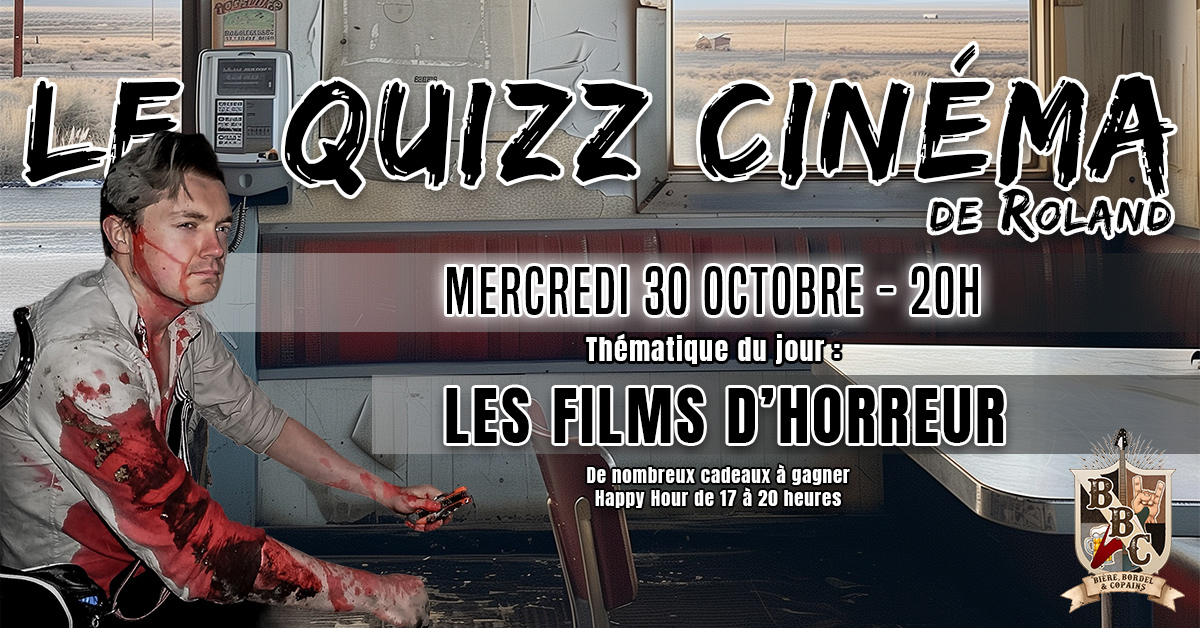 ?? Le mercredi 30 octobre à 20 heures, le BBC vous invite à une soirée ciné-quiz terrifiante spéciale "Films d'Horreur" ! Préparez-vous à frissonner et à tester vos connaissances sur les classiques et les nouveaux chefs-d'œuvre du cinéma d'horreur.
