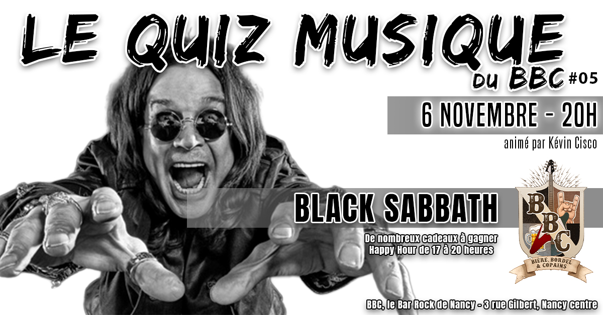 ⚡ Jeudi 6 novembre à 20h, le BBC rend hommage aux parrains du heavy metal. Anecdote véridique : Ozzy Osbourne a déjà croqué la tête d’une chauve-souris sur scène (et il paraît que ce n’était même pas prévu). Prépare-toi à au moins 15 questions sur l’histoire de ce groupe qui a transformé Birmingham en capitale mondiale des riffs lourds.