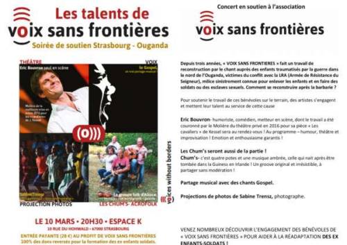 Depuis trois années, « VOIX SANS FRONTIERES » fait un travail de reconstruction par le chant auprès des enfants traumatisés par la guerre dans le nord de l’Ouganda, victimes du conflit avec la LRA (Armée de Résistance du Seigneur), milice sinistrement connue pour enlever les enfants et en faire des soldats ou des esclaves sexuels. Comment se reconstruire après la barbarie -