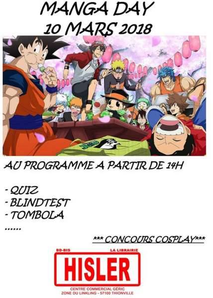 Journée sur le thème du manga avec des animations, quiz, cosplay, tombola avec plein de cadeaux à gagner !