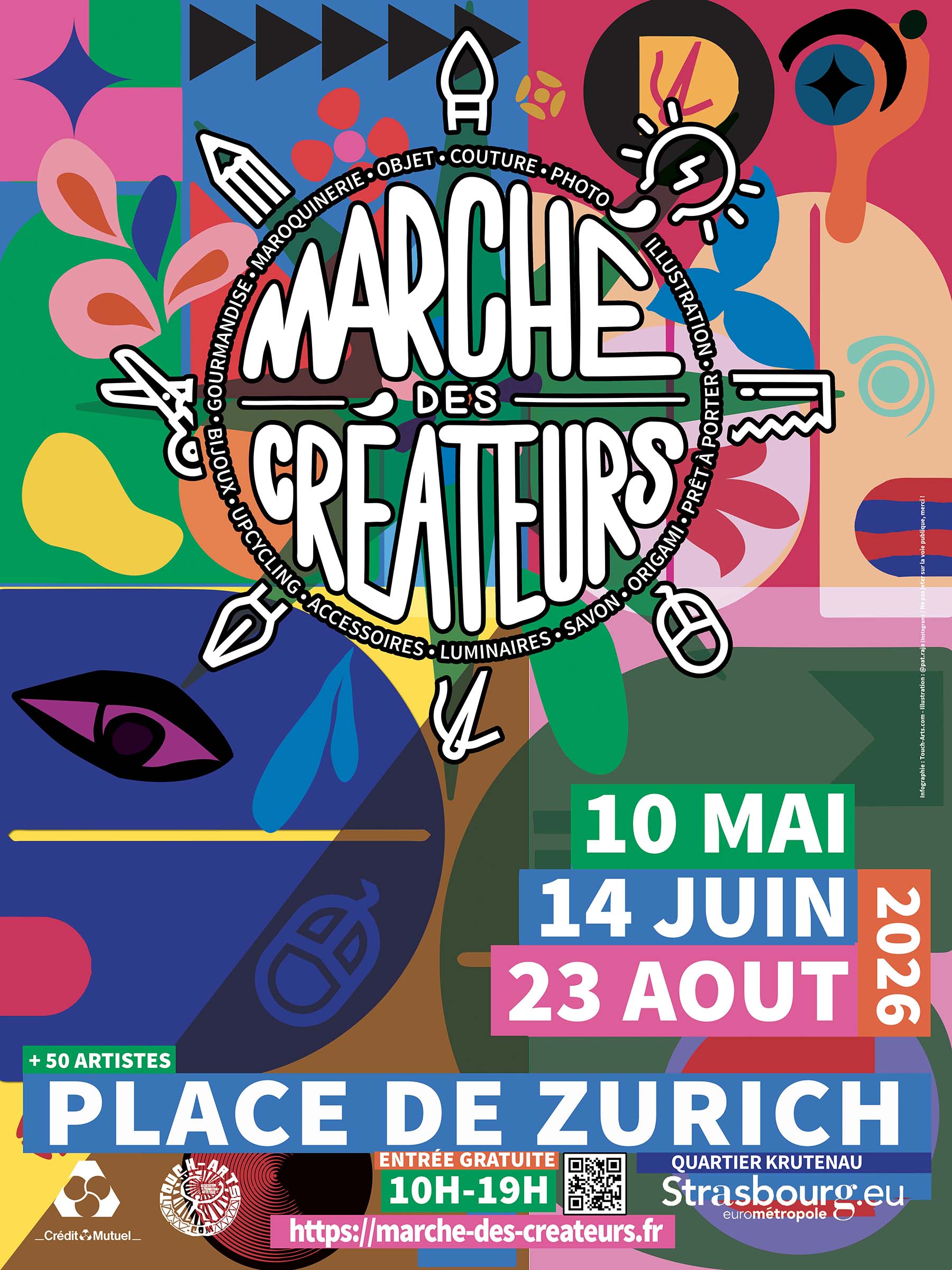 SAISON 2026, Marché des créateurs par Touch-Arts.com place de Zurich à Strasbourg : 3 rendez-vous artistiques pour rythmer cet été.