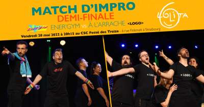 Les choses sérieuses commencent dans le Championnat d’Impro Lolita! C’est l’heure des demi-finales! Les quatre équipes qui se sont qualifiées à l’issue de tous les matchs d’impro qui ont eu lieu depuis le mois de décembre 2021 vont finalement se rencontrer pour une place pour la graaaande finale! Un week-end complet de théâtre d’impro se tiendra les 20 et 21 mai avec tout d’abord le match entre Ener’Gym et A l’Arrache. Les comédiens d’Ener’Gym portent vaillamment leurs joggings fluo pour transpirer dans leur gymnase favori, munis de leurs tapis de sol préférés. Quant à ceux de A l’Arrache c’est tout juste s'ils n’oublient pas de s’habiller en sortant de chez eux, ou alors ils auront mis leur jogging à l’envers. Les un.es ont fait du stretching leur force, les autres risquent d’oublier leurs muscles au vestiaire. En tout cas, c’est un très beau match d’improvisation théâtral qui nous attend entre Ener’Gym et A l’Arrache le 20 mai!