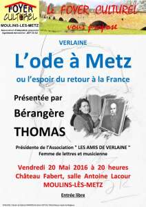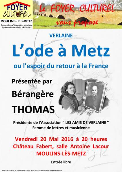 Au temps de l’Alsace – Lorraine, Paul VERLAINE se réclama patriote, chauvin et "messin" d’autant plus que sa ville natale, Metz, était annexée. En septembre 1892, il écrit une ode dont le titre "Metz" évoque sa naissance lorraine, l’amour de cette ville mais surtout il est visionnaire du retour à la France de la ville conquise.