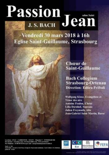 Le vendredi 30 mars 2018 à 16h, en l’église de Saint-Guillaume à Strasbourg, le Choeur de Saint-Guillaume donnera la Passion selon Saint-Jean de J.S. BACH BWV 245.