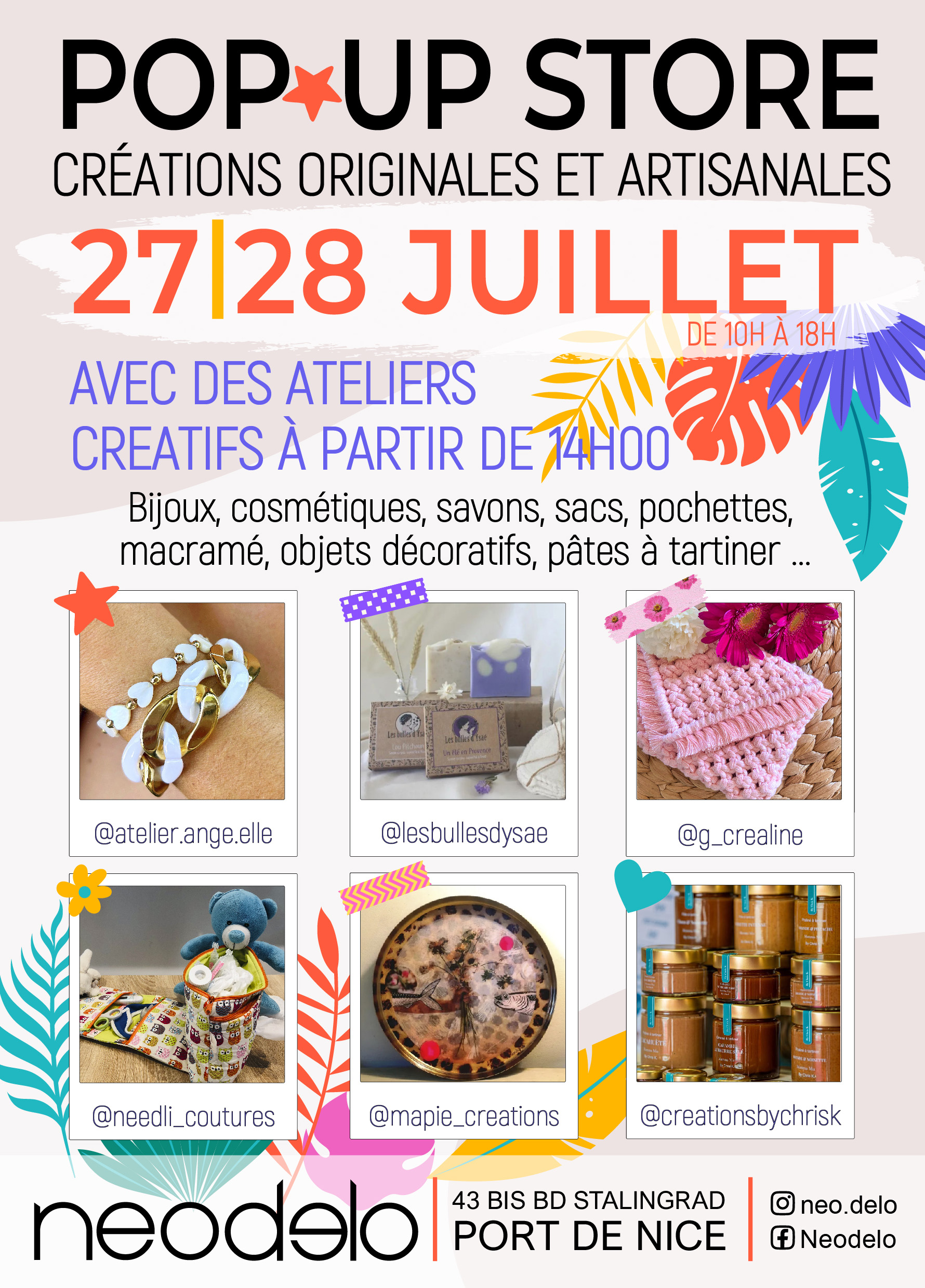 ?? Les 27 et 28 Juillet, Neodelo vous invite au Pop Up Store « Spécial Créations Originales et Artisanales » !