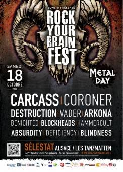Pour sa deuxième édition, le ROCK YOUR BRAIN FEST – Metal day est fier d’accueillir en tête d’affiche CARCASS, qui, après plus de 15 ans d’absence, fait son grand retour sur la scène grindcore / death metal. Les amateurs de musique plus extrême se réjouiront également de la présence de BENIGHTED et BLOCKHEADS.