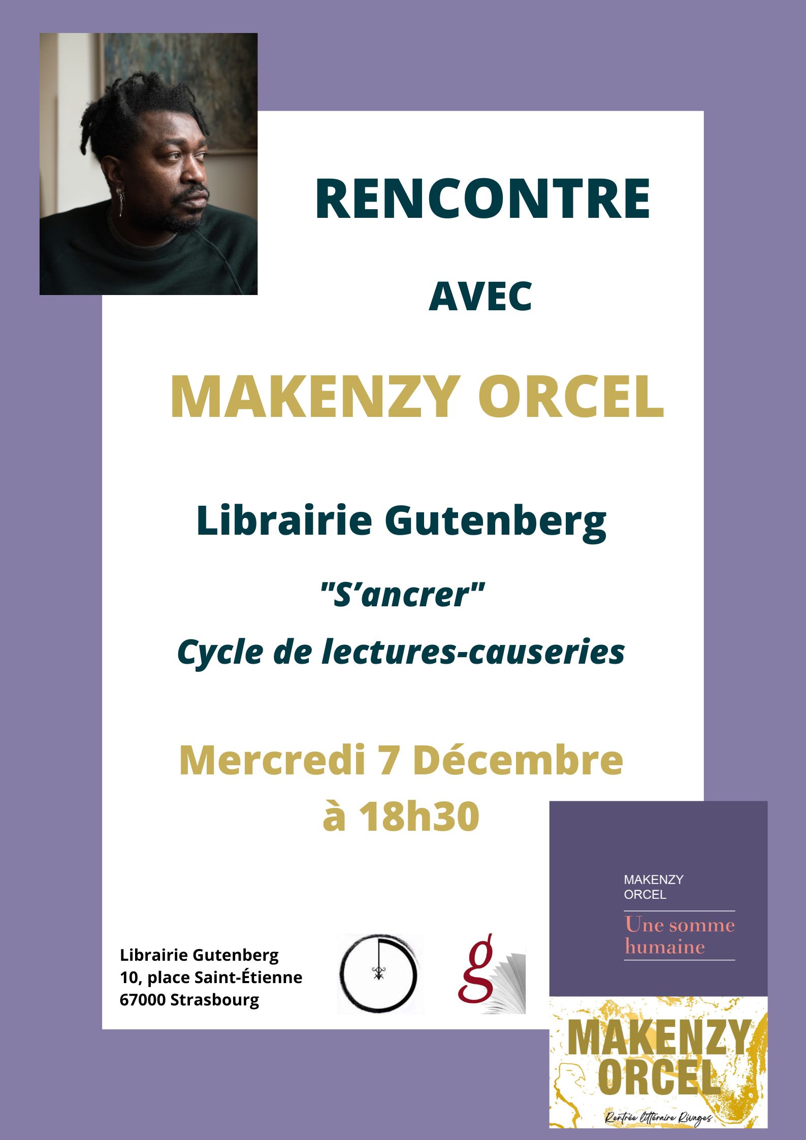 L’Association Chemins du dedans lance sa première lecture-causerie, le 7 décembre 2022 à 18h30 à la Librairie Gutenberg : c’est l’occasion d’inviter à Strasbourg Makenzy Orcel, auteur haïtien, parmi les 4 finalistes du Prix Goncourt 2022, et de découvrir Une somme humaine, son dernier roman paru aux éditions Rivages.