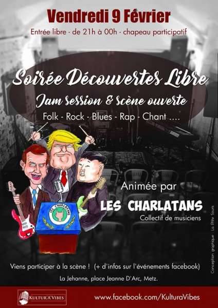 Nous accueillons le collectif LES CHARLATANS, artistes d’horizons différents, se regroupant pour boeufer et jamer.