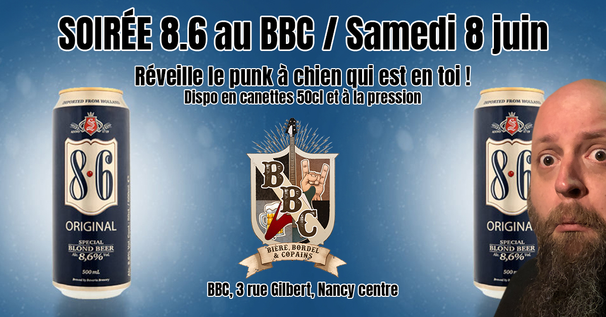 Donc oui m'sieur dames, nous aurons spécialement pour la soirée de la 8.6 en canettes 50cl et à la pression au BBC.
