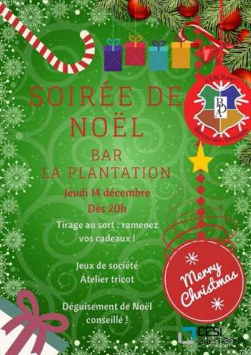 La fin de l’année arrive déjà et nous vous proposons une soirée sur le thème de NOEL jeudi prochain 14 décembre à 20h au bar La Plantation ! :)