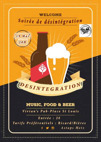 Pour finir cette année en beauté et décompresser après les partiels on vous propose un retour au Vivian’s Pub pour une soirée de désintégration qui promet d’être top!!!!