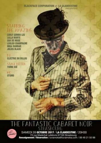 Le FANTASTIC CABARET NOIR propose 2 heures de numéros plus fous les uns que les autres, le tout lancé à vive allure par OTOMO DE MANUELl en MC aux côtés des magnifiques LOULOU CHAMPAGNE, SOA DE MUSE, CURLY GOMBO LEE, JULIUS BLACK, MIKA RAMBAR avec en spéciale asian-guest la superbe LALLA MORTE. La joyeuse tribu sera accompagnée de la merveilleuse YUMIE KOÏ en Stage Kitten et d’autres invités surprises.