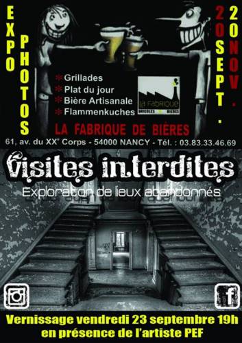 La Fabrique de Bières accueille sur ses murs les Visites Interdites de Pef, photographe de lieux abandonnés et interdits, du 20 septembre au 20 novembre 2016.