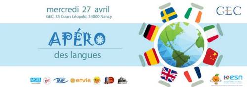 Je vous donne rendez-vous pour un nouvel apéro des langues à 20h au GEC (35 cours Léopold).