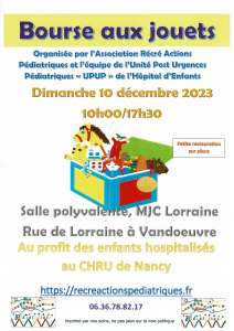 L'association Récré Actions Pédiatriques organise sa première bourse aux jouets au profit des enfants hospitalisé au CHRU de Nancy, hôpital d'enfants