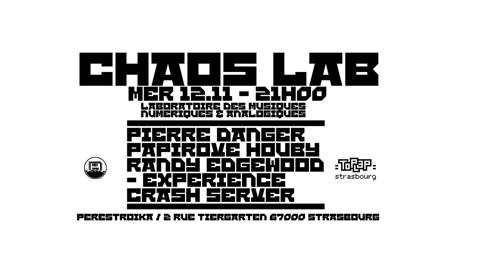 Plongez dans l’univers atypique de Chaos Lab, une série d’événements conçus pour explorer la frontière entre le bruit, le code, l’immersion audio-visuelle et la rupture. À chaque édition, nous privilégions les expériences live exclusives, l’art du livecoding, la collision entre sons organiques et machines numériques, et une voix libre pour chaque création. Préparez-vous à être emporté·e dans un voyage inattendu où chaos rime avec création.