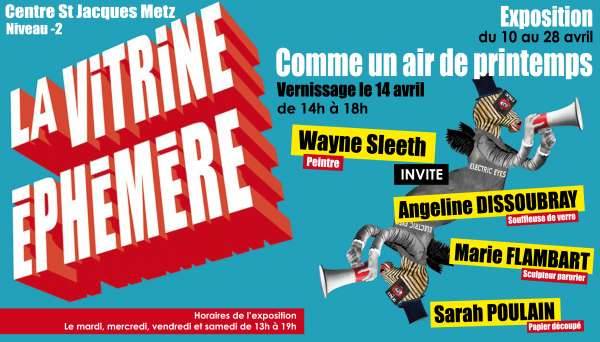La Vitrine Ephémère vous invite à découvrir sa nouvelle exposition ’comme un air de printemps’ qui débutera le 10 Avril jusqu’au 28 Avril .