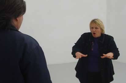 Jocelyne Wilhelm propose aux publics sourds, malentendants et entendants une visite guidée en Langue des Signes Française des expositions du Frac Lorraine ?The Making of Husbands : Christina Ramberg en Dialogue? & ?Degrés Est : Emma Perrochon?