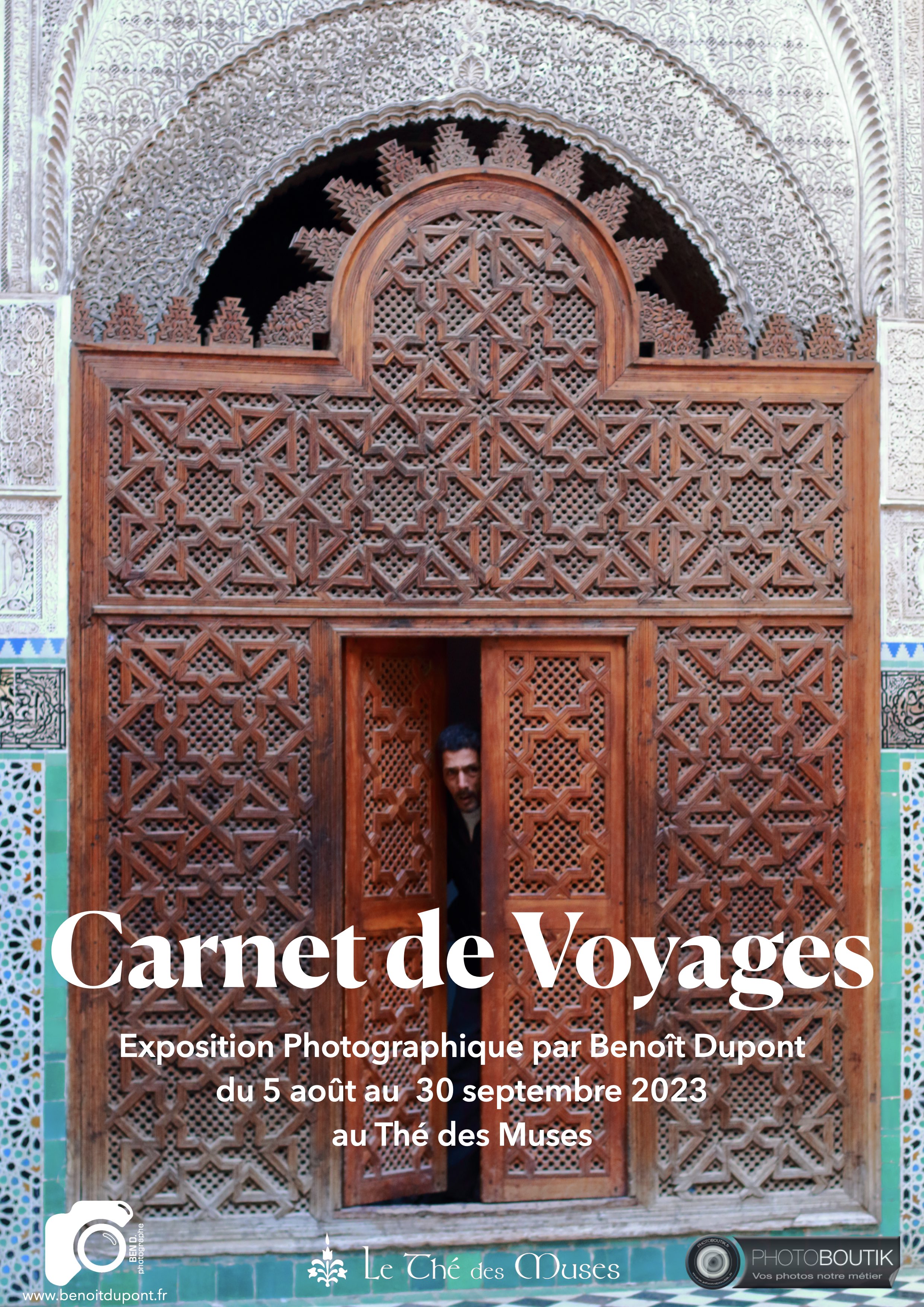 L'exposition « Carnet de Voyages » présente une série de clichés glanés sur trois continents différents. Il s'agit d'une invitation à suivre le photographe dans une expérience faite de mystères, d'odeurs, de saveurs et de sensations.