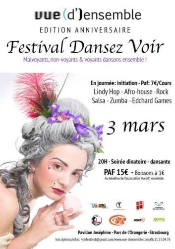 Le Festival Dansez Voir, ce projet lancé en 2013 a pris une place particulière dans les activités de l’association Vue (d’) en semble. Le Festival Dansez Voir est un évènement qui a pour objectif de rassembler et sensibiliser en dansant un large public à la déficience visuelle. Le concept est de faire danser entre malvoyants, non-voyants et voyants ensemble.