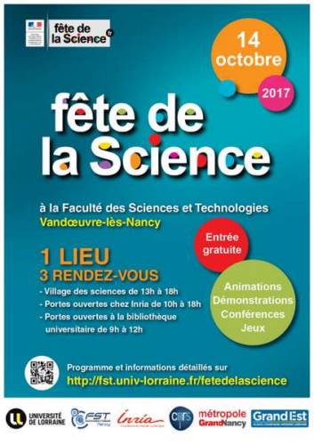 Retrouvez le programme complet sur le site de la FST : http://fst.univ-lorraine.fr/fetedelascience