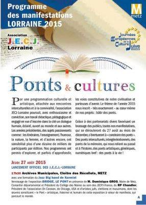 Vernissage de l’exposition BRIDGE, LE PONT en présence de M. Dominique GROS, Maire de Metz, Conseiller départemental et Président du Collège des Maires au sein des JECPJ-France, du RP Chandler, Président de l’association On Caravan, de Chicago, USA et d’artistes juifs, chrétiens et musulmans, dont les œuvres constituent « le Pont » artistique, fraternel et humain de cette exposition à valeur de manifeste, qui parcourt le monde.