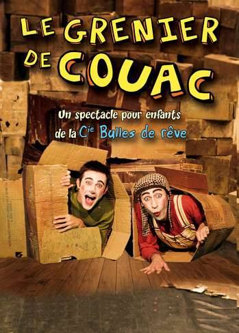 Couac et Pantin, deux curieux rigolos, entrent dans un grenier et découvrent des livres de contes et de vieux objets.