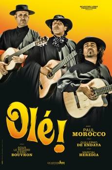 Né aux États-Unis, Paul Morocco apprend très tôt à jouer de la guitare, à jongler et à jouer la comédie. Tandis qu’il parcourt le monde et se perfectionne, sa réputation grandit en Europe. Il s’associe à Guillermo de Endaya et Marcial Heredia, deux autres virtuoses de la guitare, pour façonner un show qui mélange théâtre, musique et cirque. C’est le début de ce trio flamenco hilarant, avec de l’énergie à revendre, qui réussit à marier guitare classique et burlesque avec un naturel déconcertant. « Olé ! » est drôle, imprévisible et spectaculaire.