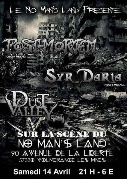 Syr Daria ouvrira Post Mortem avec un Metal puissant et varié! En effet, la formation a su se tailler une réputation solide en piochant dans toutes les influences de ses membres. Heavy, power, rock, hard rock et même thrash, le groupe sait se renouveler sans cesse au fil des années et des premières parties prestigieuses durant lesquelles nous avons pu les découvrir : Scorpions, Tankard, Paul Di Anno, Freedom Call, Nightmare etc... SYR DARIA, c’est un univers unique, une ambiance et une expérience à découvrir absolument!!!