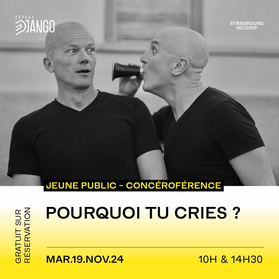 Pour sensibiliser les plus jeunes aux risques auditifs, Christian Houillé et Denis Leonhardt (membres du Weepers Circus) proposent un spectacle pédagogique haut en couleurs où deux mystérieux personnages abordent la prévention sonore ! Nous sommes ravis d’accueillir cette concéroférence unique en son genre qui s’adresse aux petits et aux grands enfants.