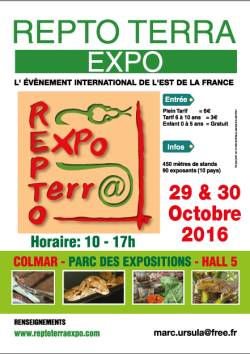 Le Repto Terra Club de Colmar organise sa bourse annuelle au parc des expositions de Colmar les 29 et 30 Octobre 2016 de 10h à 17h.